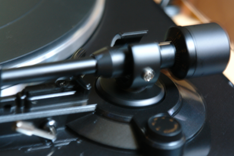 Tonearm. A carefully designed straight tonearm designed for correct geometry to minimize tracking error. A high quality moving magnet phono cartridge is factory installed. An upgrade to Denon's DL-110 moving coil cartridge is easy thanks to the detachable headshell. Adjustable anti-skating force is provided. An arm lift gently lifts and lowers the arm to a different song selection on your album. The tonearm is counter balanced design, with low friction.
